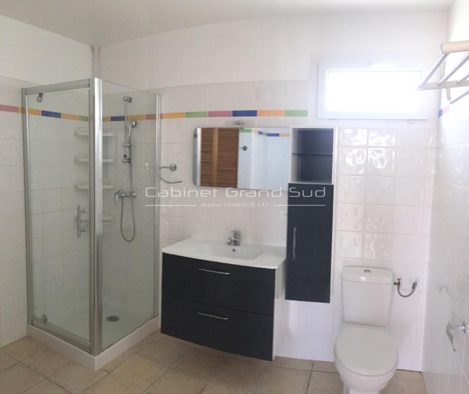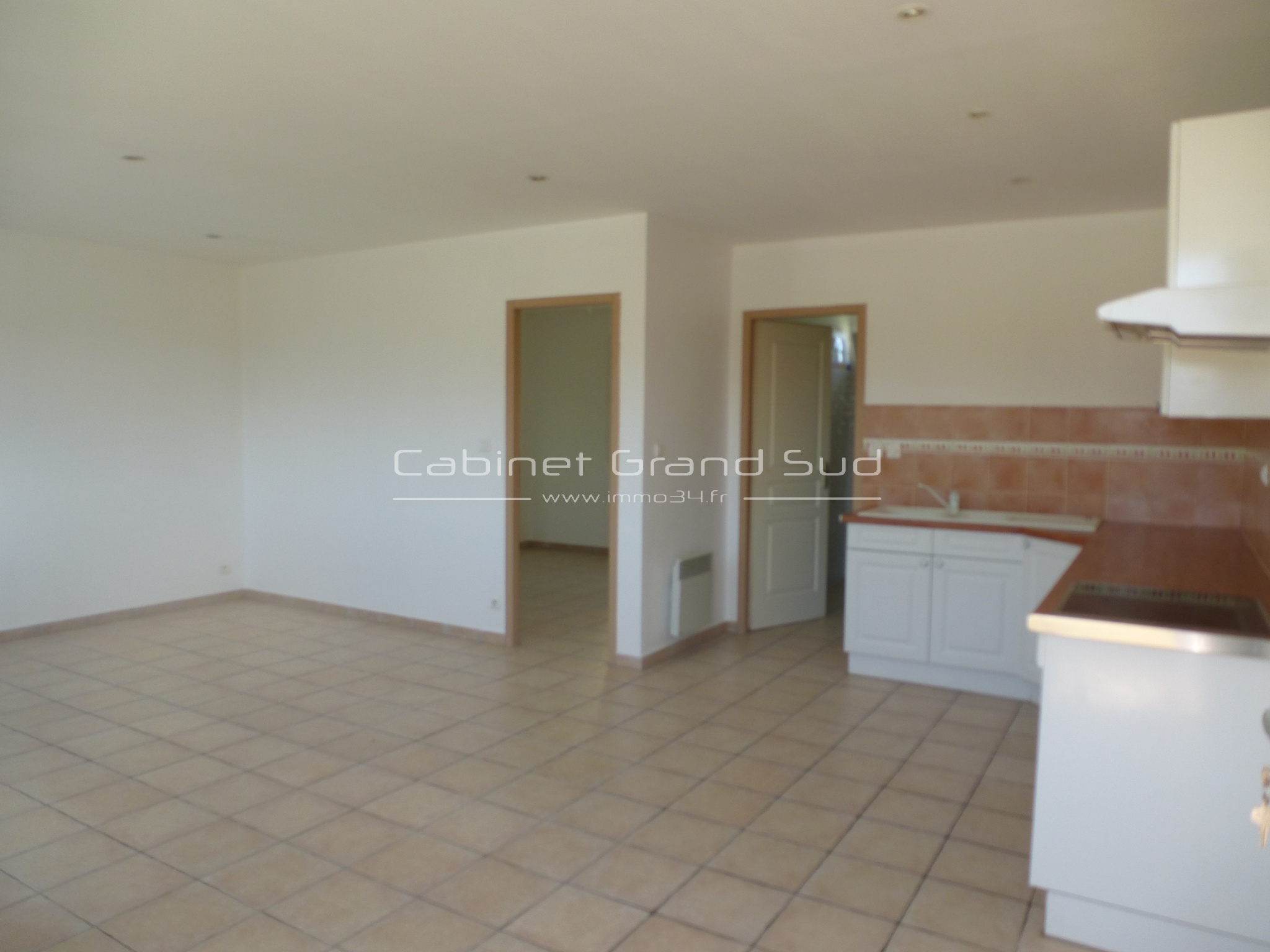 A louer à Vendargues T2 de 48m2 , offrant : un séjour avec Cuisine equipée de 27m2 donnant  , une Chambre de 13m2 et une Salle d'eau de 8m2.
