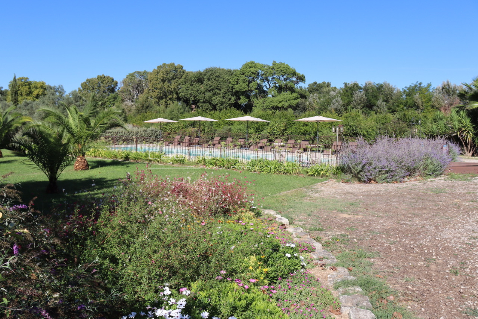 Au milieu de 24 hectares de terres agricoles appartenant au propriétaire mais proches de toutes commodités, ce Mas joliment rénové donne la sensation d'un véritable petit hameau de vacances perdu au milieu d'une végétation abondante (20.000 M2 de parc paysagé !).